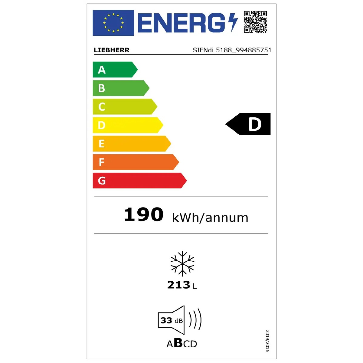Potrošnja energije: 190 kWh/godišnje